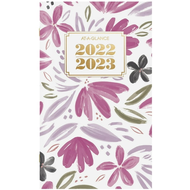 At A Glance Badge Floral 2022 2023 Two Year Monthly Planner Pocket 3 12 X 6 Walmart Com